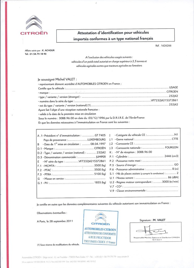 Certificat De Conformite Citroen